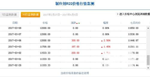 據(jù)有關(guān)數(shù)據(jù)監(jiān)測(cè)顯示,3月1日,中國(guó)R22制冷劑廠家出廠價(jià)格為11333.33元/噸,3月31日,中國(guó)R22制冷劑廠家出廠價(jià)格達(dá)到13666.67元/噸,三月份同比增長(zhǎng)20.6%;據(jù)制冷大市場(chǎng)記者了解,2月7日,中國(guó)R22制冷劑廠家出廠價(jià)格集中在9883元/噸。